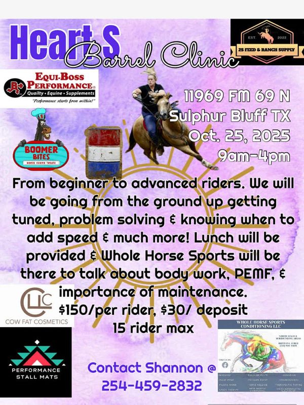 Come join me at the ranch as we get down to the nitty gritty to get you and your horse feeling and looking your best! I will be going over different ways to get your horses in shape, tuning and adding speed, as well as problem solving.