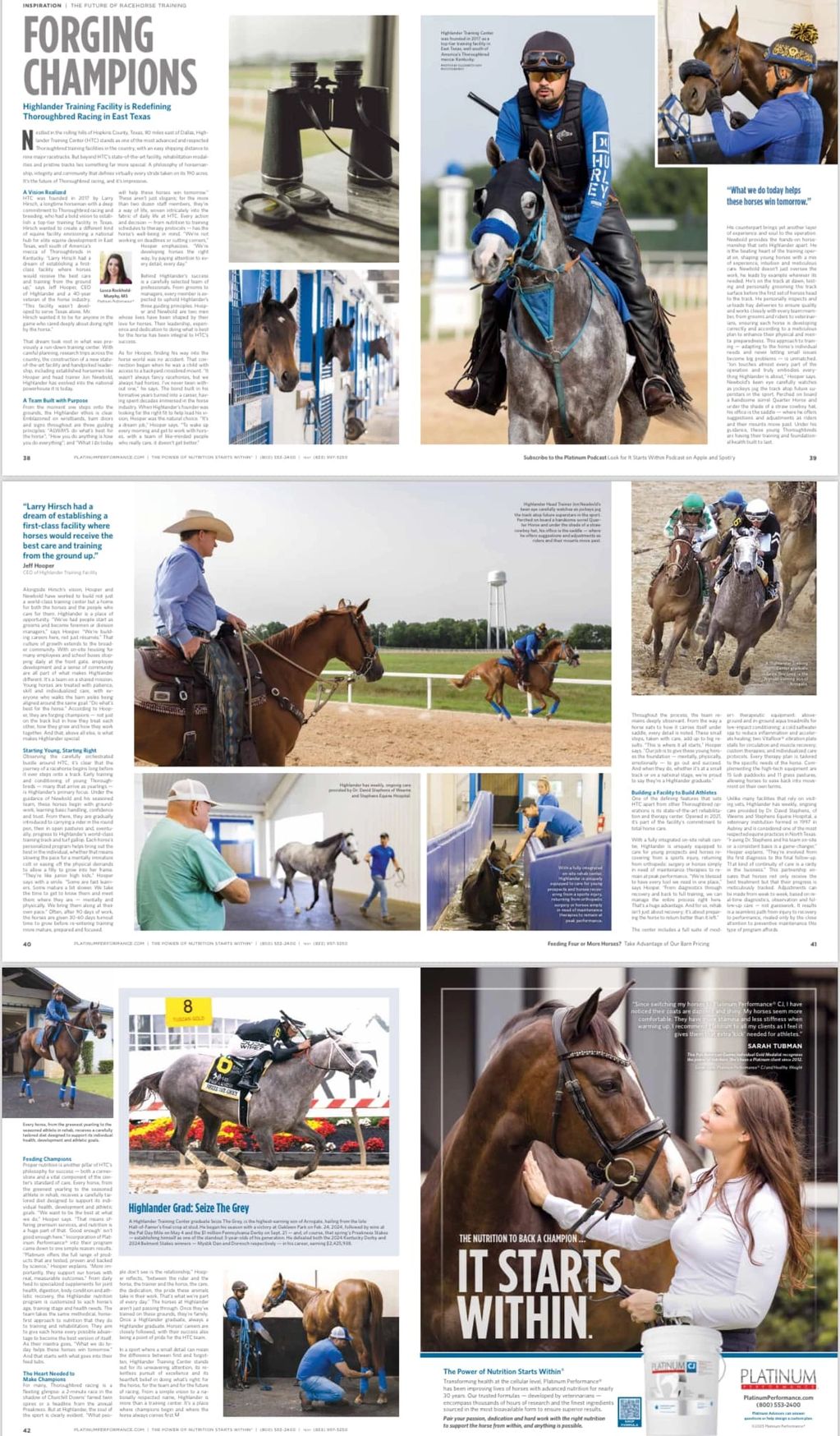 This great article published by Platinum Performance truly shows this amazing team that helps these thoroughbred and quarter horses become great competitors. From working in the therapy center and bringing them back from surgeries or injuries, to watching them go back to the track is truly an amazing experience. I'm proud to be a part of the Highlander Team.