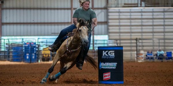 Kiwi is a super sweet mare that started running barrels in 2025 and has been solid 3/4D horse with big mistakes still. She would be youth suitable as she doesn't have any alley issues and easy to ride and handle.