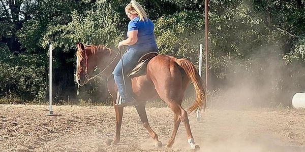Cash is a 6 years old AQHA gelding. About 4 months of training total. Solid walk/trot. Good stop, needs miles and to find his person. Finish him out how you want and go enjoy him!